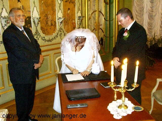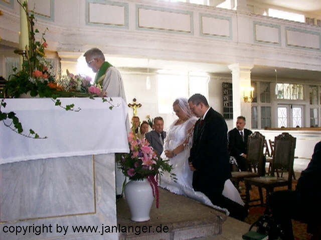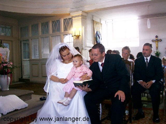 Wir haben geheiratetAm 21.08.2004 haben wir uns im Schloß Lichtenwalde das "Ja-Wort" gegeben. Am 22.08.2004 haben wir in der Kirche zu Drebach Gottes Segen bekommen. Anbei ein paar Bilder von dieser Festivität.
