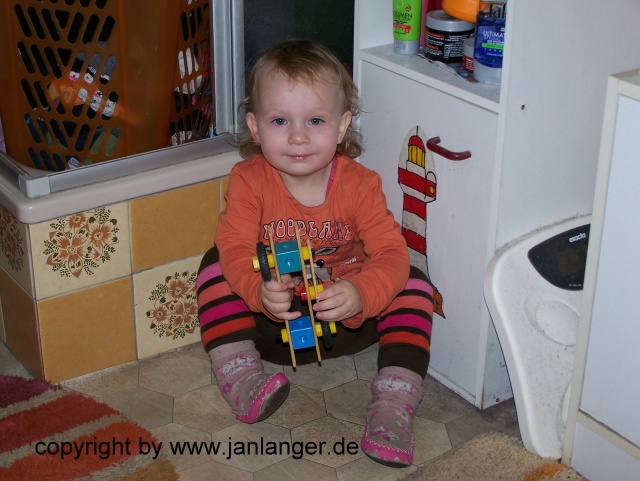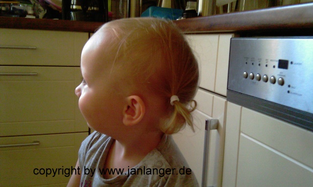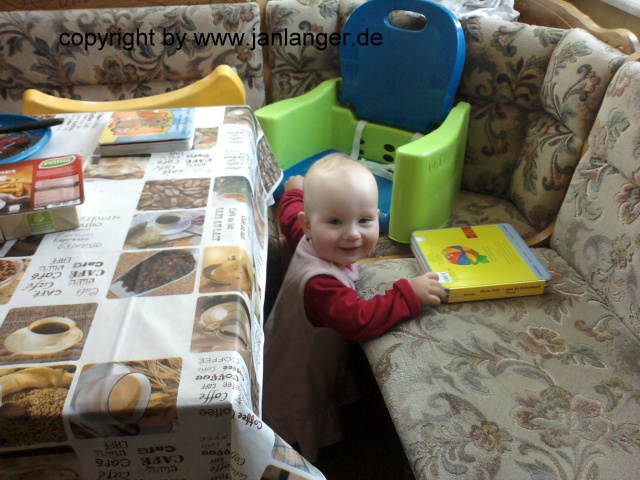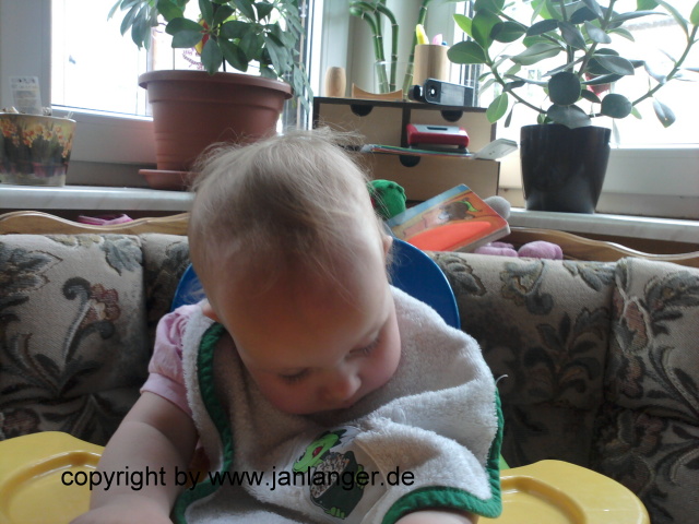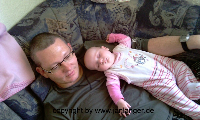 Und wieder Mittagsheie auf Papa; ein Vierteljahr alt. In Papa´s Keller.