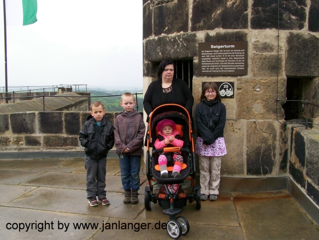 Die neuen Sachen für den Kindergarten und das neue Trampolin. Gemeinsamer Ausflug auf die Festung Königstein, der etwas durch den Regen vermiest wurde.
