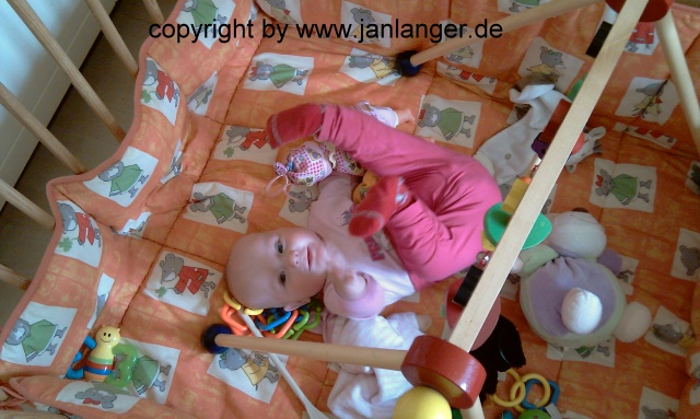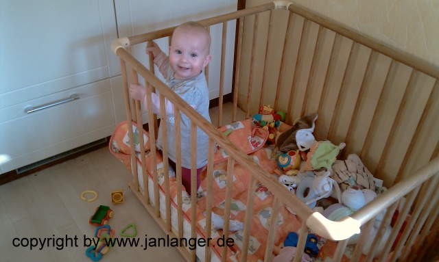 Spielen im Laufgitter; ein halbes Jahr alt.