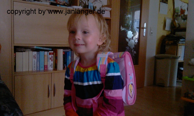 Der neue Ranzen vor den Kindergarten.