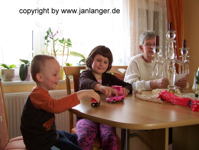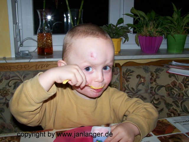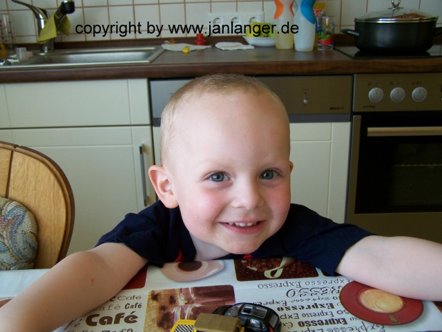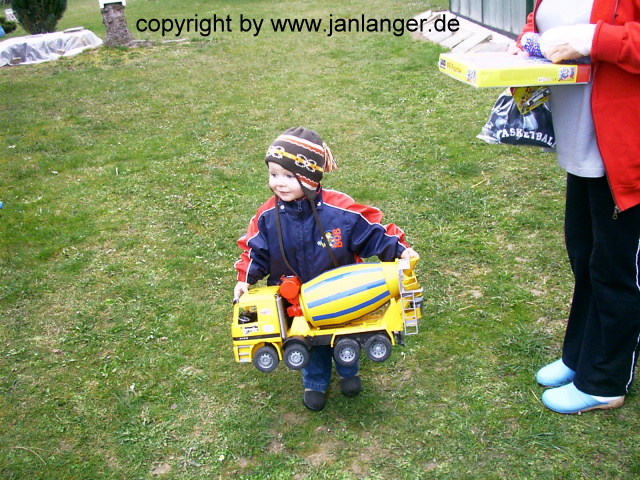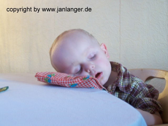 Mittags nicht schlafen wollen und nachmittags am Tisch eingeschlafen 2007 Ostern; Rocco´s großer LKW Smarties, frisch vom Weg