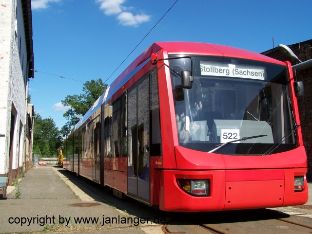 Diese Variobahn fährt auf der Linie 522 zwischen Chemnitz und Stollberg.