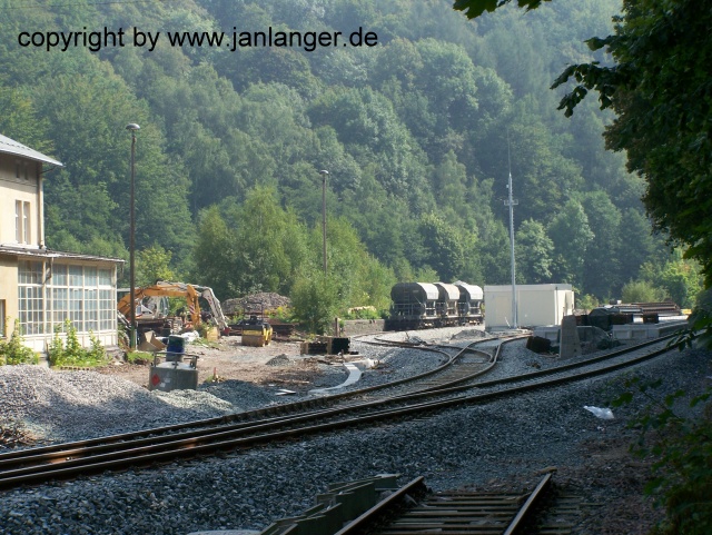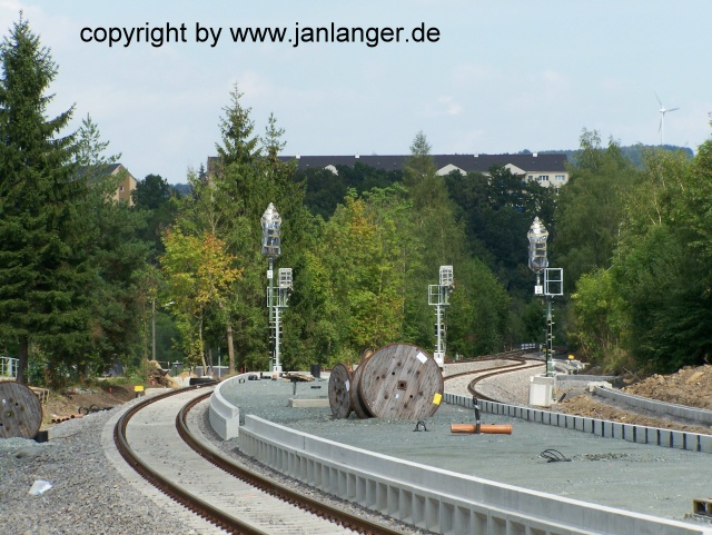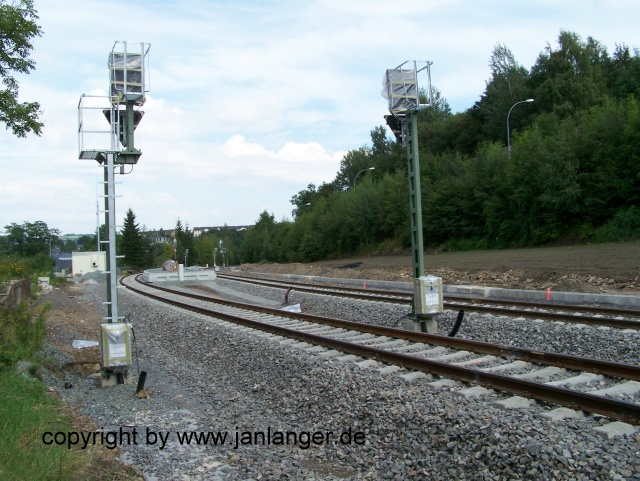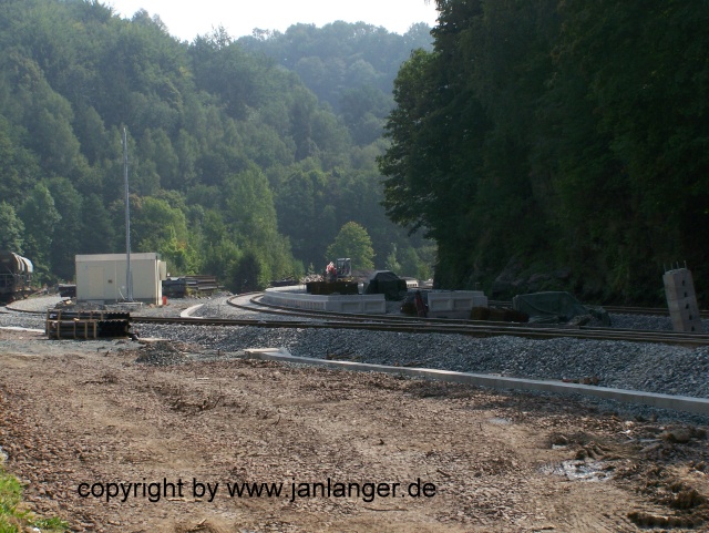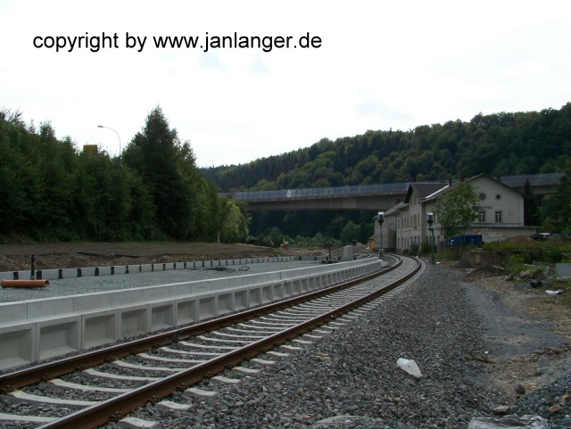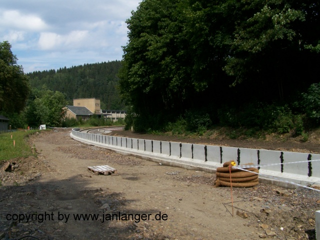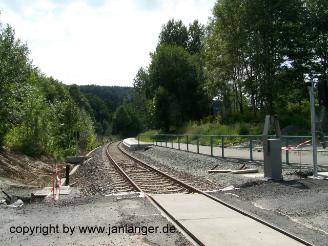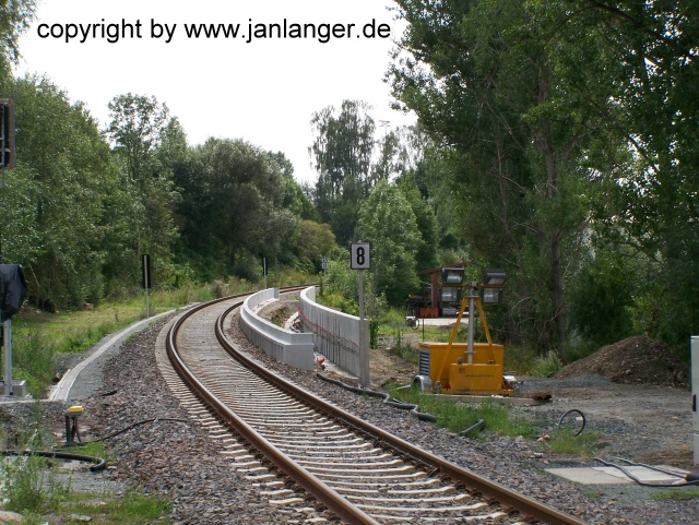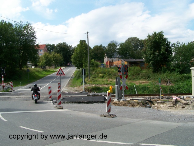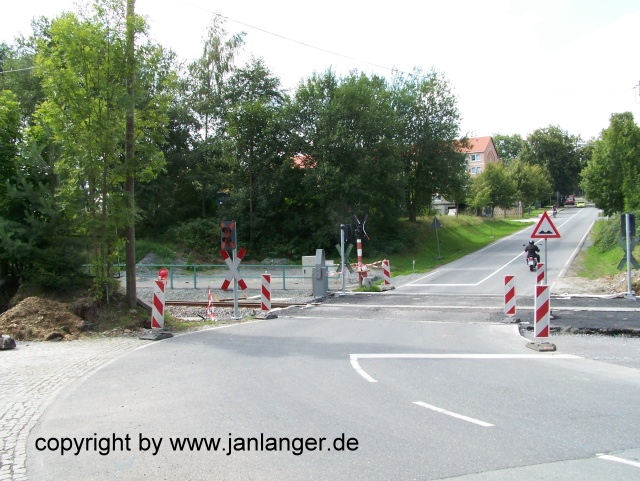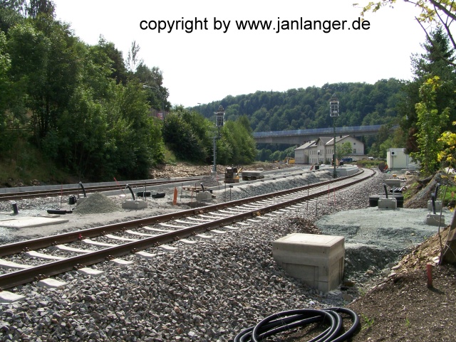 Der Umbau ist im vollen Gange. Neues ist entstanden. Altes verschwunden. Gefahren wird bis Erdmannsdorf-Augustusburg auf der Schiene. Weiter bis Annaberg-Buchholz unterer Bahnhof nur mit Schienenersatzverkehr. Anfangs war sogar ein Bus der BVO-Erzgebirge GmbH zu sehen. Mittlerweile fährt nur noch ein Transporter in deren Auftrag. Dieser aber regelmäßig im 2-Stunden-Takt. Teil 2: Neuer Haltepunkt Flöha-Plaue In Flöha-Plaue entsteht ein neuer Haltepunkt. Blick Richtung Süden. Eine etwas nähere Aufnahme. Ebenfalls wird der Bahnübergang auf den neuesten Stand der Technik gebracht. Bahnhof Erdmannsdorf-Augustusburg Leider wird er zu einem Haltepunkt zurückgebaut. Die Ausfahrt Nord. Ein Blick in Richtung Süden. Der alten Hausbahnsteig wird komplett erneuert. Zukünftig soll in Hennersdorf gekreuzt werden. Neuer Haltepunkt Zschopau-Ost Der Bahnsteig ist bereits fertig. Auch hier wird der Bahnübergang komplett erneuert. Bahnhof Zschopau Die Gleisanlagen des Bahnhofes in Zschopau wurden vollständig entfernt und neu aufgebaut. Nichts erinnert mehr an den alten Bahnhof. Links im Bild der graue Betonblock mit rotem Geländer ist der Rest einer Brücke über die Gleisanlagen. Ich habe von dieser seinerzeit die letzten Bilder gemacht. Der neue Bahnsteig ist jetzt etwas näher an den Ortskern gerückt. Hoffentlich bekommt er auch ein Dach. Die neue Ausfahrt Ost. Ein Blick zurück. Hier entsteht der neue Zugang zum Bahnsteig. Nochmals ein Blick aus Osten in Richtung Südwesten. Bahnhof Wilischthal Der neuer Zugang und zugleich Unterführung. Die Ausfahrt in Richtung Süden. Auch hier ist nicht viel übrig geblieben vom Bahnhof. Nur noch ein einsamer Bahnsteig. Bahnhof Wolkenstein Ein Blick auf die neuen Gleisanlagen in Wolkenstein. Etwas herangeholt. Der alte Bahnsteig ist nicht mehr vorhanden und mußte einem Neubau weichen. Von einem neuen Bahnsteigtunnel habe ich noch nichts gesehen. Ich hatte aber auch nur einen begrenzten Zugang. Neuer Haltepunkt Wiesa Der Bahnsteig ist schon fertiggestellt. Er liegt jetzt deutlich näher am Ortskern. Ein genauerer Blick. Die Ausfahrt in Richtung Wiesenbad. Auch hier wird der Bahnübergang erneuert. Bahnhof Schönfeld-Wiesa Vom ehemaligen Bahnhof ist nichts mehr geblieben. Ein einzelnes Gleis geht noch durch ihn. An der rechten Bildseite ist das ehemalige Empfangsgebäude zu sehen. Nur noch große Dreckhaufen, die hoffentlich bis Dezember verschwinden. Zurück ging es mit dem Auto. Damit endet der zweite Teil meiner Dokumentation. |